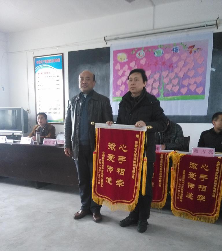 2016年1月16日,安徽合大環(huán)境檢測有限公司出席參加合肥市高劉鎮(zhèn)青山社區(qū)“微心愿”愛心捐贈活動,為當(dāng)?shù)剞r(nóng)村留守兒童和弱勢群體實(shí)現(xiàn)自己的“微心愿”貢獻(xiàn)公司的綿薄之力。